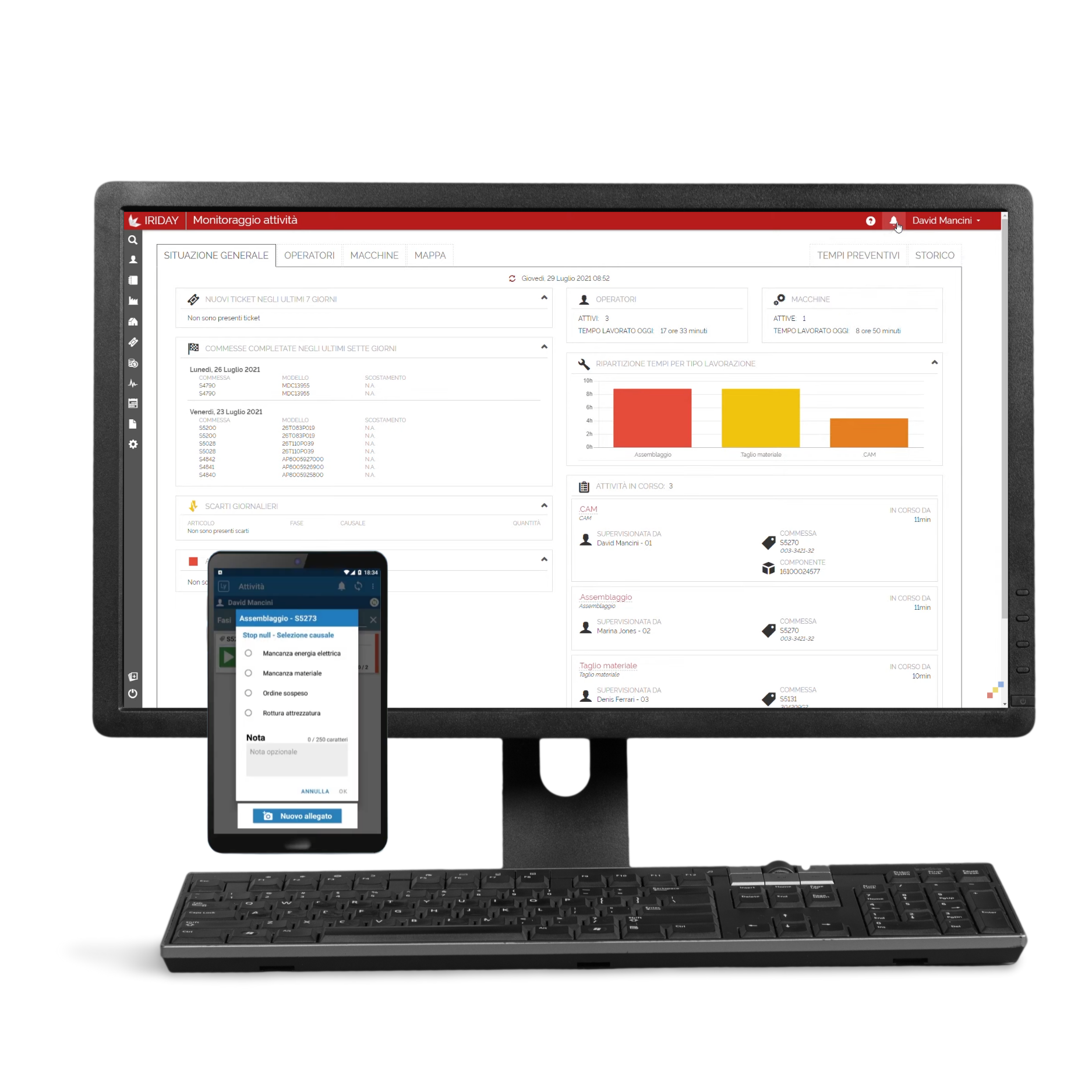 Alle soluzioni CAD/CAM affianchiamo una suite MES integrata per il controllo e il monitoraggio in tempo reale della produzione, aiutando le aziende a ridurre inefficienze, tempi morti e costi operativi.
